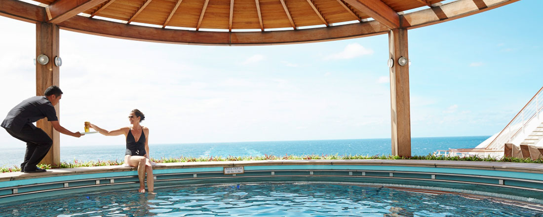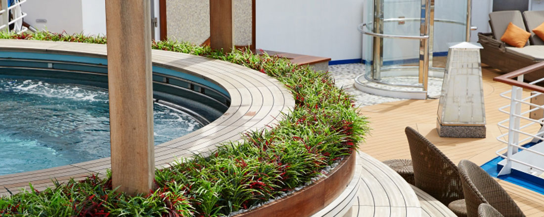 På dæk 14 ligger det store indbydende soldæk med poolområde og liggestole. Rundt om poolen ligger The Mermaids Tall bar. På dæk 15 kan du også se en film under stjernerne.