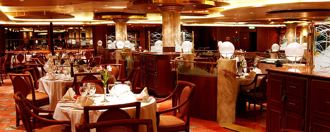 Skibet har 18 dæk, hvoraf dæk 5 til 18 er for passagerer. I forenden, midten og bagenden ligger skibets elevatorer. På dæk 5 finder du reception, udflugtssalg og business center. På dæk 6 og 7 findes skibets hovedrestauranter med a-la-carte servering. Disse er inkluderet i dit krydstogt. Derudover findes der nogle specialrestauranter ombord, hvor du bl.a. kan få en god steak eller en pizza. På disse restauranter betaler du en merpris.