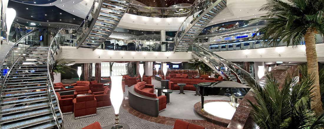 På dæk 6 finder du forskellige butikker med salg af accessories og udflugter. Det er også her, du finder Casino Venezano. På dæk 6 og 7 finder du i forenden den store teatersal med musik og shows. Det er også på dæk 6 og 7, du finder de forskellige specialrestauranter.