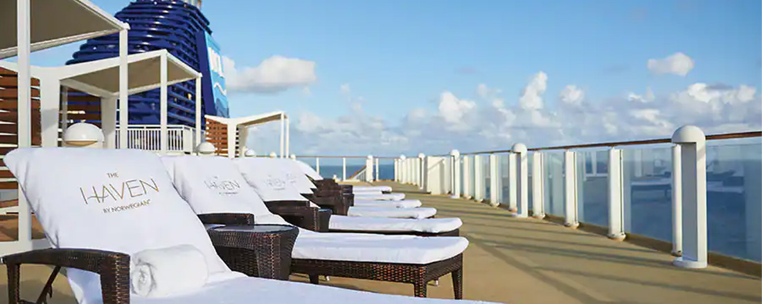 Skal oplevelsen opgraderes, vil et cruise i skibets The Haven afdeling være en unik oplevelse med service bedre end topklasse. Her får du din helt egen butler, suite, adgang til eksklusivt Courtyard område med kolde håndklæder, frisk frugt og meget mere. Ønsker du en overvældende rejse, hvor du ikke er omringet af så mange mennesker, og gerne vil have creme de la creme, er The Haven skræddersyet til dig.