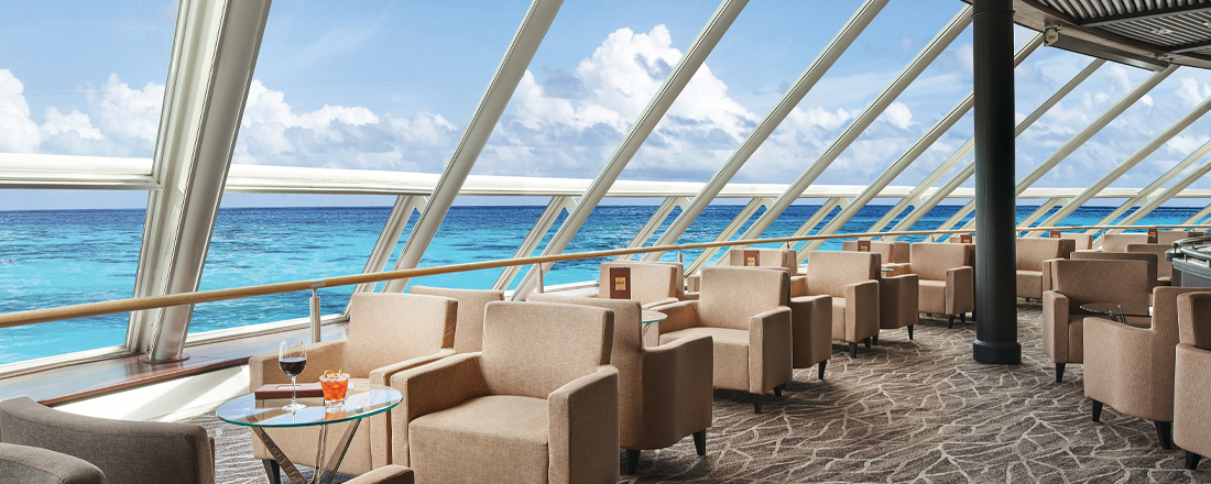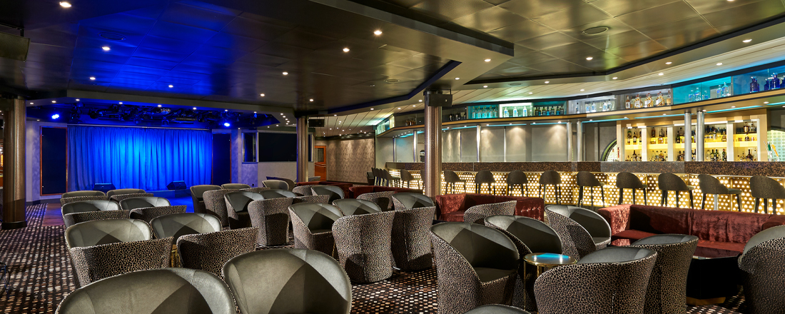 The Local Bar & Grill er et besøg værd dagen lang, for uanset om du er sulten eller ej, er den tilbagelænede atmosfære tiltrækkende. Atrium Café & Bar er beliggende i skibets centrum, hvor der altid er mennesker at kigge på og en god stemning, og du kan også bestille din kaffe i skibets egen Starbucks. Om aftenen er der fest i Bliss Ultra Lounge, hvor de smittende rytmer gør det næsten umuligt ikke at begive sig ud på dansegulvet. Ude på dækket finder du Champs Bar og Topsiders Bar, der begge forsyner dig med farverige cocktails og andre læskende drikkevarer dagen lang.