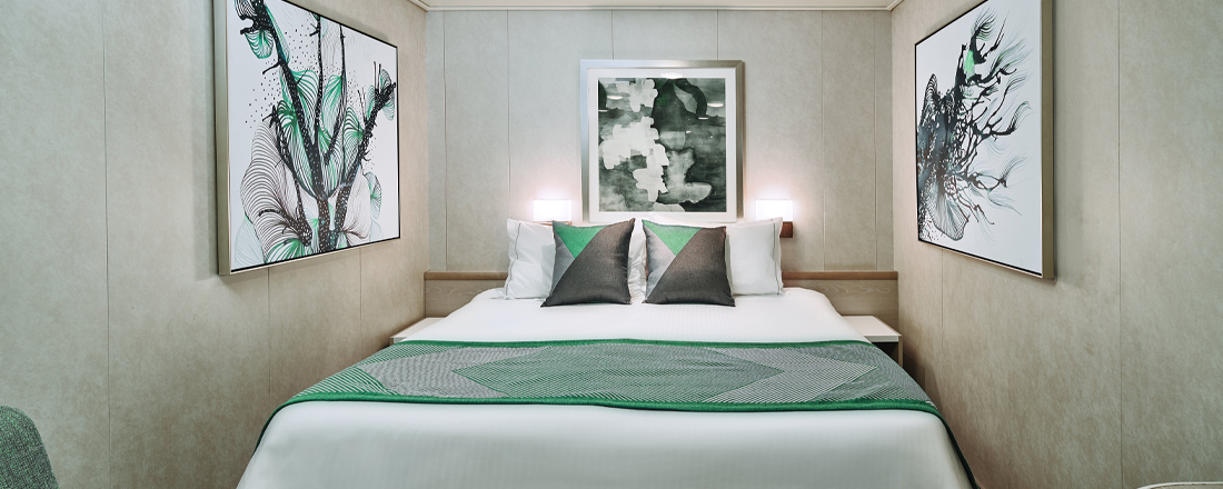 Kahytten til dig, der kun bruger kahytten til at sove og skifte tøj eller bare hellere vil bruge penge på andet end indkvarteringen. Kahytterne er beliggende midt i skibet og er uden vinduer, men er ellers yderst komfortable og ganske rummelige for indvendige kahytter. Plads til 2-4 personer afhængig af kategori.