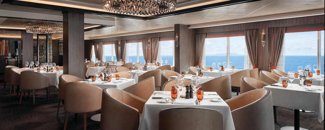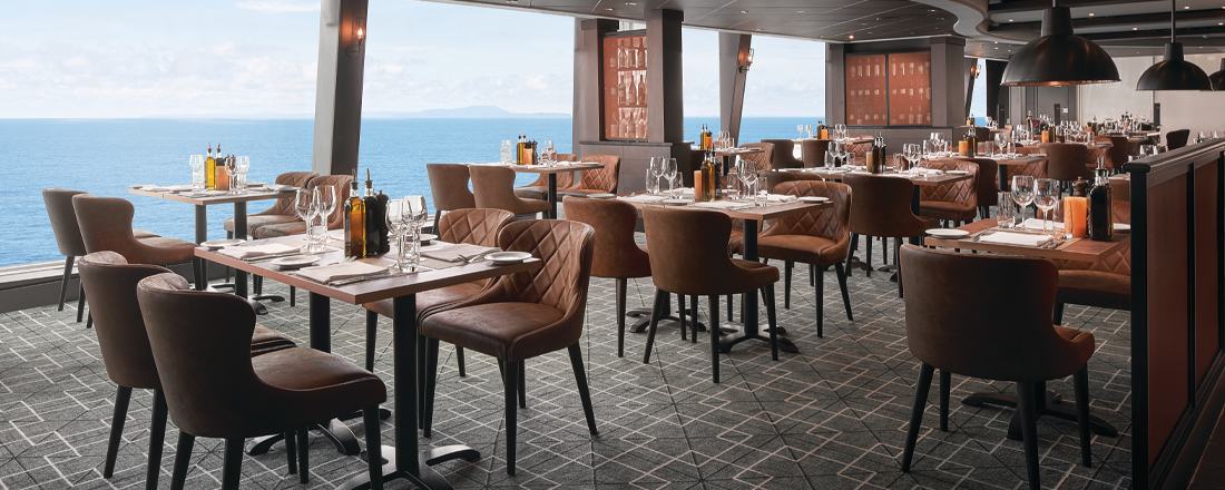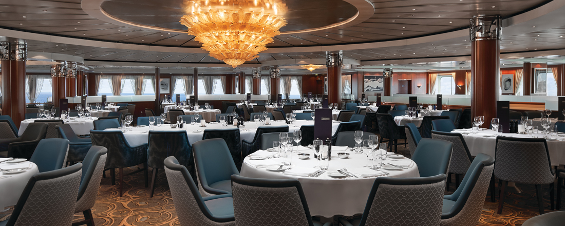 Hver aften kan du frit vælge at spise i én af de to hovedrestauranter, Crossings eller Palace. De har begge en stilfuld indretning, der er både moderne og klassisk, mens atmosfæren er afslappet, og a la carte-kortet skifter dagligt, så du får forskellige kulinariske oplevelser, selvom du spiser det samme sted mere end én gang. Garden Cafe er skibets buffetrestaurant, hvortil du også har adgang. Her serveres store, inspirerende buffetter morgen, middag og aften, så uanset hvad du har lyst til, er det næsten garanteret, at du kan finde det her. Endelig har du også muligheden for et mere casualt aftenmåltid på The Local Bar & Grill, hvor du kan få ægte comfort food som fish 'n' chips og en Reuben sandwich og skylle det ned med en kold fadøl, mens du følger en fodboldkamp på tv. I løbet af dagen kan du også gå på Topsiders Bar & Grill eller The Great Outdoors, hvor du kan nyde havudsigten sammen med burgere og hot dogs - enten a la carte eller i form af en grillbuffet.