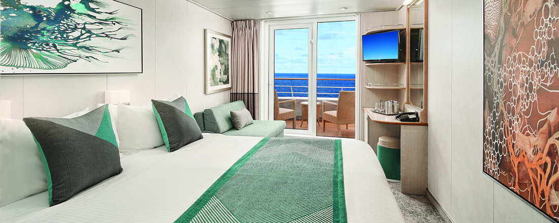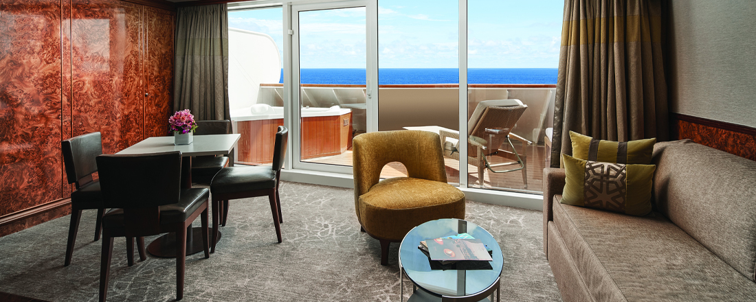 Suiterne byder på lidt ekstra. De er væsentlig større end balkonkahytterne og mere rummelige samt er udstyret med ekstra komfortable senge og lækkert sengetøj. Alle er med egen balkon med bord og stole, så du kan sidde ude og nyde udsigten. Kahytterne har ligeledes siddeplads i form af en sofa. Du forkæles også med lidt lækkerier til ganen i kahytten, og du har adgang til 24-timers butlerservice. Kahytten til dig, der ønsker det bedste. Plads til 2-4 personer afhængig af kategori.