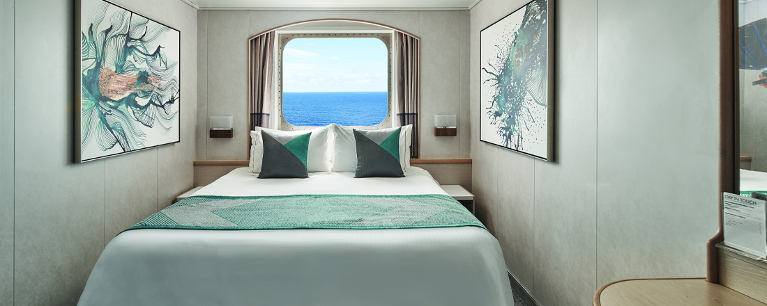 Komfortable kahytter med et vindue, så du kan se ud på havet og få dagslys ind i kahytten. Vinduet kan ikke åbnes. Perfekt til dig, der gerne vil kunne se, hvad der foregår udenfor uden at skulle forlade kahytten. Plads til 2-5 personer afhængig af kategori.