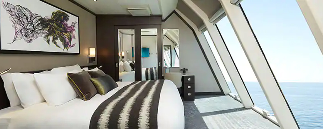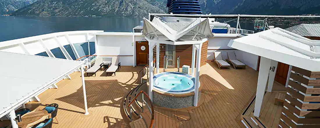 Suiterne byder på lidt ekstra. De er væsentlig større end balkonkahytterne og mere rummelige samt er udstyret med ekstra komfortable senge og lækkert sengetøj. Alle er med egen balkon med bord og stole, så du kan sidde ude og nyde udsigten. Kahytterne har ligeledes siddeplads i form af en sofa. Du forkæles også med lidt lækkerier til ganen i kahytten, og du har adgang til 24-timers butlerservice. Kahytten til dig, der ønsker det bedste. Plads til 2-7 personer afhængig af kategori.