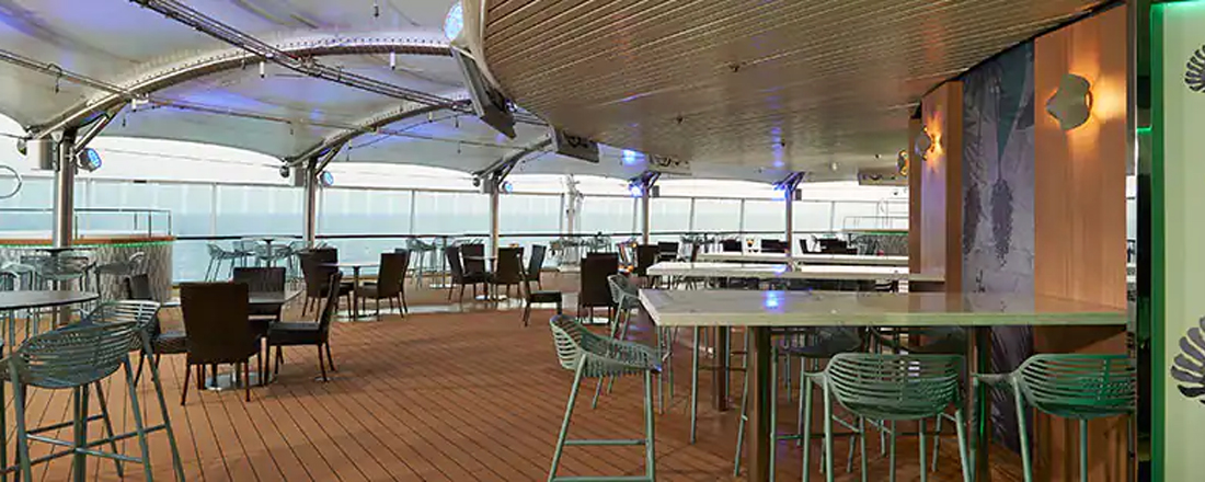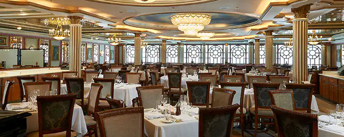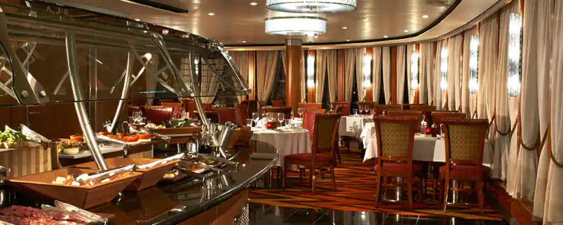 Hver aften kan du frit vælge at spise i én af de to hovedrestauranter, Aqua og Versailles. De har begge en stilfuld indretning, der er både moderne og klassisk, mens atmosfæren er afslappet, og a la carte-kortet skifter dagligt, så du får forskellige kulinariske oplevelser, selvom du spiser det samme sted mere end én gang. Garden Cafe er skibets buffetrestaurant, hvortil du også har adgang. Her serveres store, inspirerende buffetter morgen, middag og aften, så uanset hvad du har lyst til, er det næsten garanteret, at du kan finde det her. Frisklavede nudler, lækre wokretter og autentiske supper serveres på den asiatiske restaurant Ginza. Endelig har du også muligheden for et mere casualt aftenmåltid på O'Sheehans Bar & Grill, hvor du kan få ægte comfort food som fish 'n' chips og shepherd's pie og skylle det ned med en kold fadøl, mens du følger en fodboldkamp på tv eller tager et spil dart. I løbet af dagen kan du også gå på Topsiders Bar & Grill, hvor du kan nyde havudsigten sammen med burgere og hot dogs.