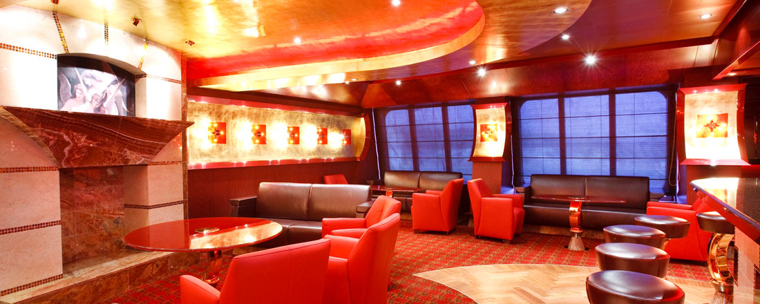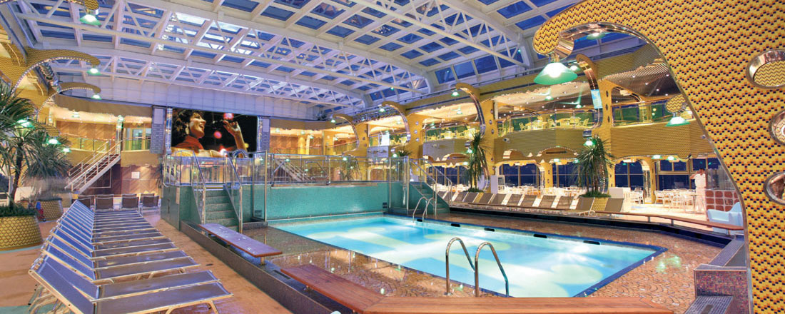 Forrest på dæk 3, 4 og 5 og finder du det store teater, hvor der hver aften er underholdning. Det er på dæk 5 du finder Casino Flamingo.