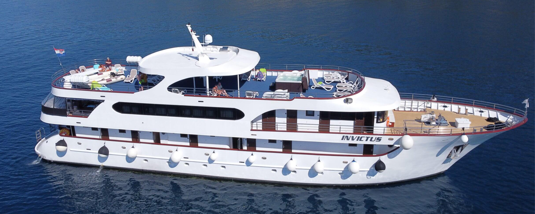 Det krystalklare vand under adriaterhavets blå himmel er tiltalende på mange måder. Kombineres disse omgivelser med en luksus Yacht og roligt tempo er rammerne for alvor sat til en mindeværdig ferie i den kroatiske skærgard. M/S Invictus er som et flydende hotel bygget i henhold til de nyeste EU standarder. Et stilfuldt skib med en hyggelig atmosfære. Med blot 36 passagerer ombord giver det en god og intim stemning, hvor alle gæster typisk kender hinanden efter en uges tid. Der er 4 passagerdæk på skibet, hvor de 2 nederste er med kahytter, og de 2 øverste er velindrettede fællesområder.