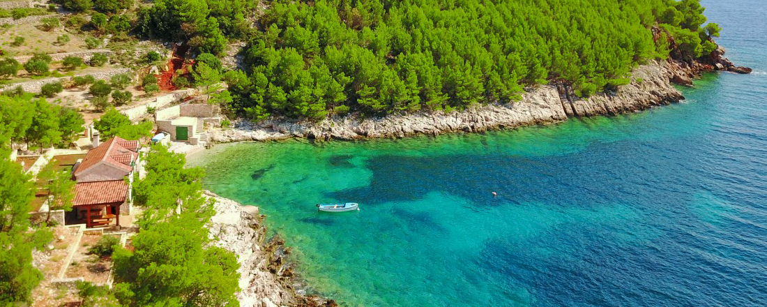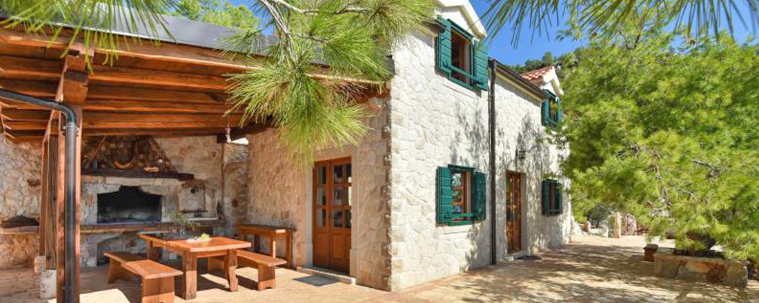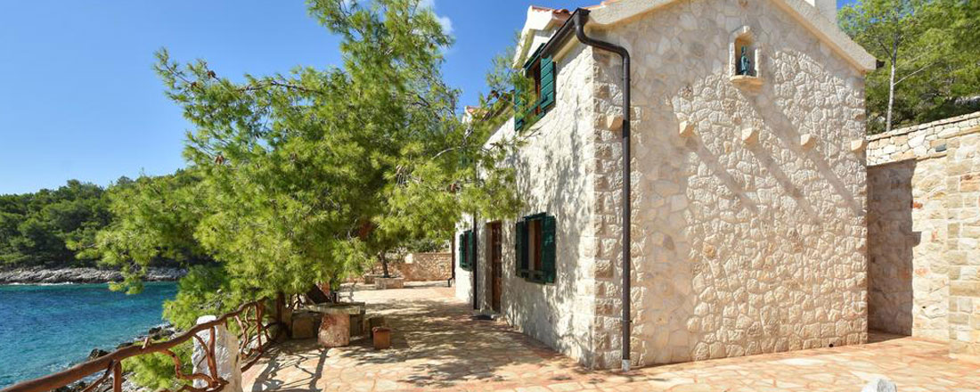 Nær Zastrazisce - midt på sydkysten af øen Hvar - ligger dette skønne, rustikke feriehus. Hvis naturen og nærhed til havet er et ønske så finder man ikke et bedre sted! Det er i absolut første række til stranden med en panoramaudsigt ud over det sædvanlige. Golubinka bugten er fantastisk smuk og indbydende til at bade i. Huset er bygget i original kroatisk sandstenarkitektur med grove træmøbler og en indretning i landlig stil. Alligevel byder villaen på alle moderne bekvemmeligheder. Villaen gennemgik en stor modernisering i 2016. For foden af grunden ligger stranden, (sten/grusstrand) med det krystalklare vand, der indbyder til en frisk dukkert.