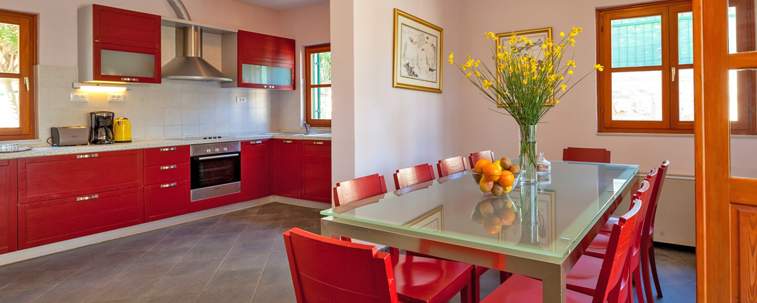 Husene ligger på en 500m2 villagrund med fliser rundt om poolen. Lige ud for bugten hvor i bor ligger Pakleni Islands som absolut er værd at besøge. I øgruppen findes fine strande og dejlige små beachrestauranter som er et besøg værd. Der går taxibåde dertil. Et alternativ kunne være at leje en båd. Lige nede ved strandpromenaden kan der lejes små og større både (de mindste er også til folk uden sejlererfaring og koster 8-1000 kr for en hel dag inkl. benzin).
