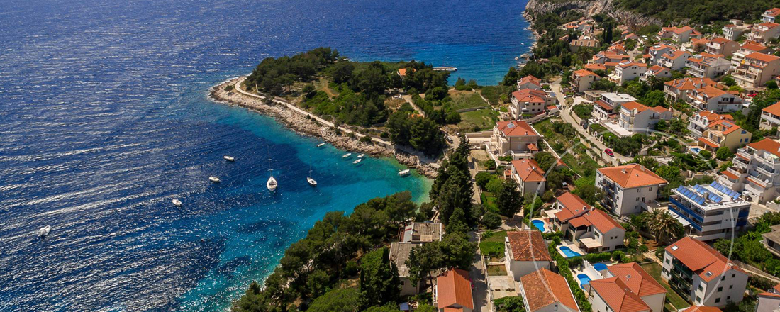 Perlen på øen Hvar er uden tvivl den hyggelige ferieby af samme navn som ligger på øens sydvest kyst. Og netop her ligger de 2 villaer i et lille villakvarter tæt på vandet. Villa Liza og Villa Dane er 2 identiske villaer som ligger spejlvendt ved siden af hinanden blot 1500m fra byens hyggelige old town. Beliggendheden er fredelig og rolig med udsigt over havet fra 1 sal. At der samtidig kun er 150m til vandet og strandpromenaden giver villaerne en 5* beliggenhed. Der går en skøn panorama sti hele vejen langs vandet ind til byens centrum. Her langs promenaden er der flere små beachbarer og beachclubs undervejs. Byens gamle bydel oser af stemning med en hyggelig lystbådehavn, små gader med lækre restauranter og hyggelige cafeer og barer. Nattelivet her kan blive meget hektisk på den "fede" måde.